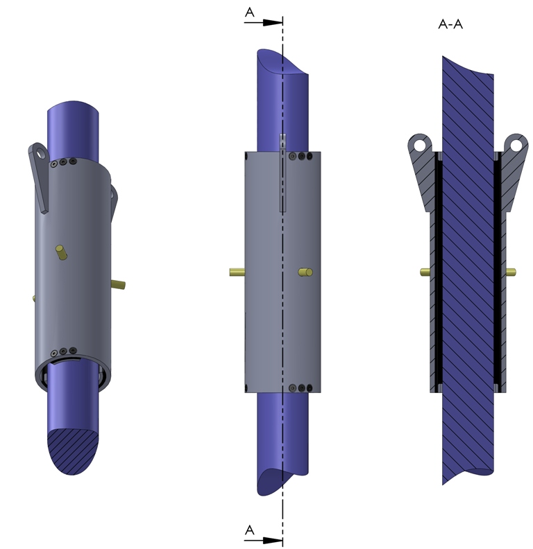 The cable is pushed into the device. The compressed air cushions are then subjected to pressure. Now the cable is pulled in with the help of the eyelets on the assembly device.