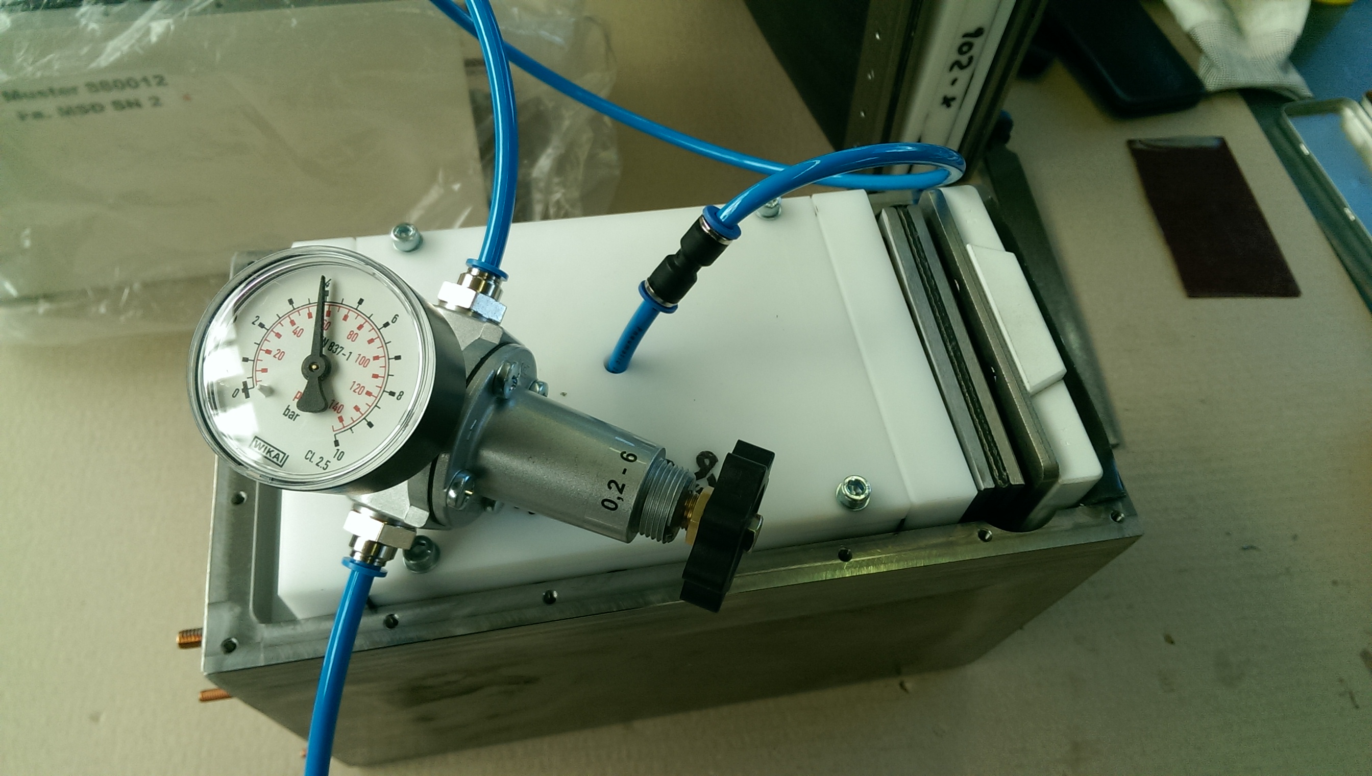 The compressed air cushions are charged with compressed air and the pressure is maintained. After the successful gluing, the compressed air cushions and fittings are removed.